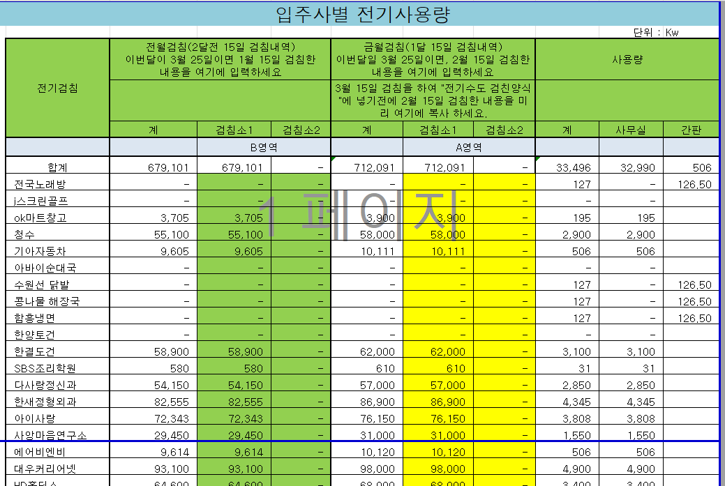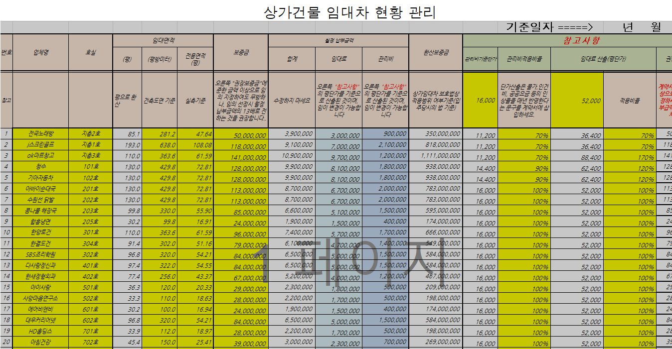 상가건물 관리 엑셀템플릿